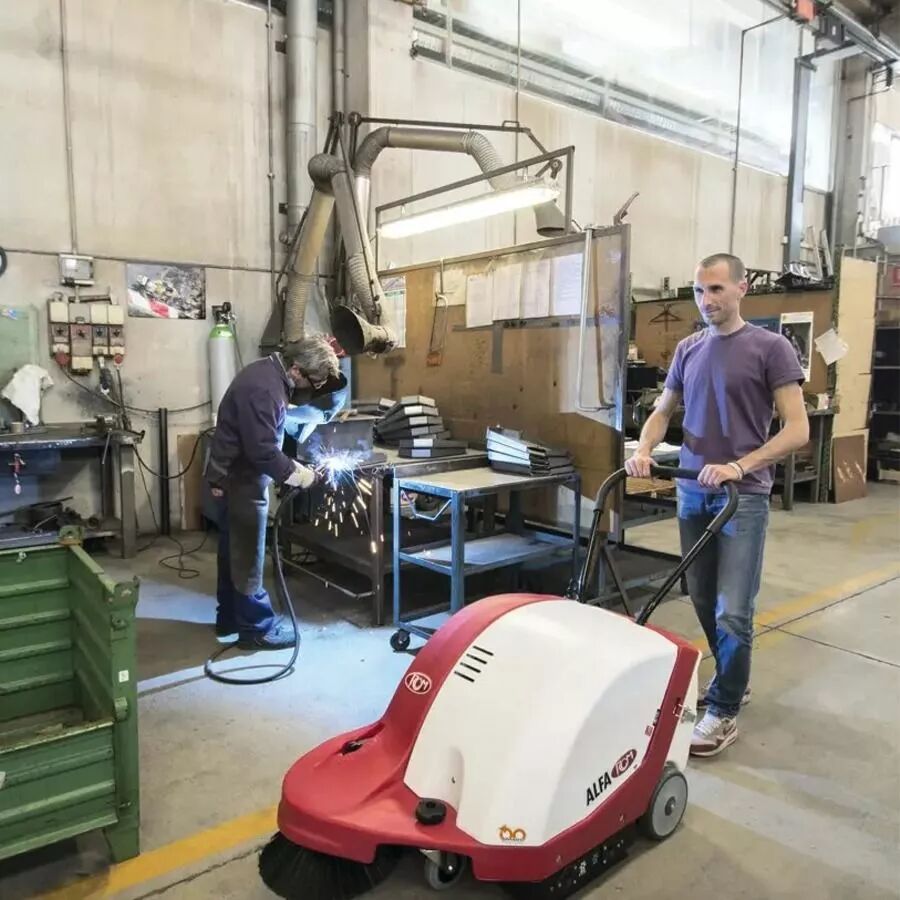 Nettoyez vos grands espaces sans effort avec la balayeuse Alfa E de RCM. Version batterie pour un travail silencieux, coque ultra-solide et utilisation simple.