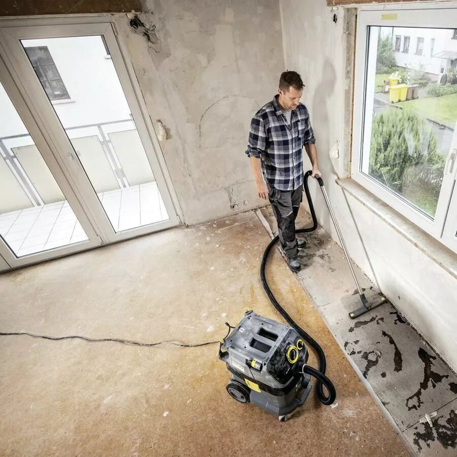 Aspirateur Karcher haute performance pour poussières fines et inflammables. Cuve 30L, nettoyage de filtre automatique, idéal travaux intensifs.