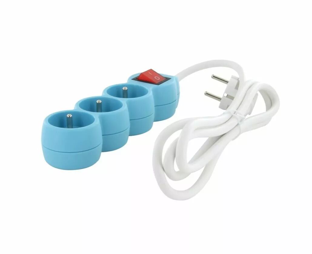 Bloc 3 prises avec interrupteur - blanc/bleu