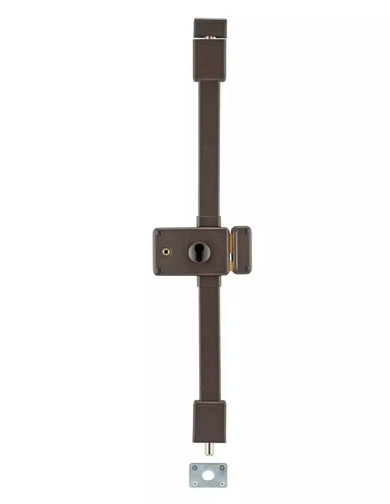 Tringles non apparentes - Tringles standards permettant une condamnation de porte de 1,65 m à 2,25 m Mécanisme intérieur type équerre permettant la manoeuvre du 1/2 tour avec la clé, de l'intérieur comme à l'extérieur Pêne haut et bas en acier ø 16 mm sur tringles télescopiquespermettant un ajustement à la longueur désirée et ne nécessitant aucune recoupe Le montage des serrures ne nécessite pas d'entaillage spécifique de la porte Enjoliveur de cylindre côté intérieur Poignée double non fournie Livrée sans cylindre Coffre de 14 x 88 mm, entraxe de 6 mm Axe 7 mm à tirage, axe 55 mm à fouillot - tringles téléscopiques Pose facile sans entaillage de la porte Possibilité d'ajouter un kit tringle supplémentaire