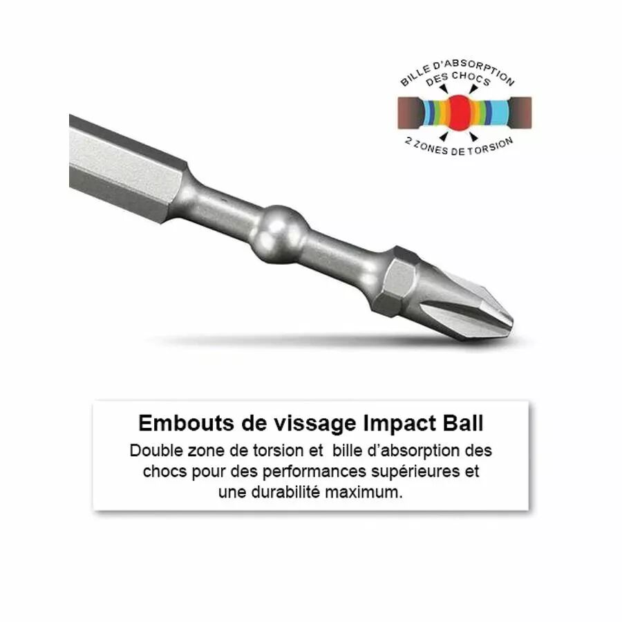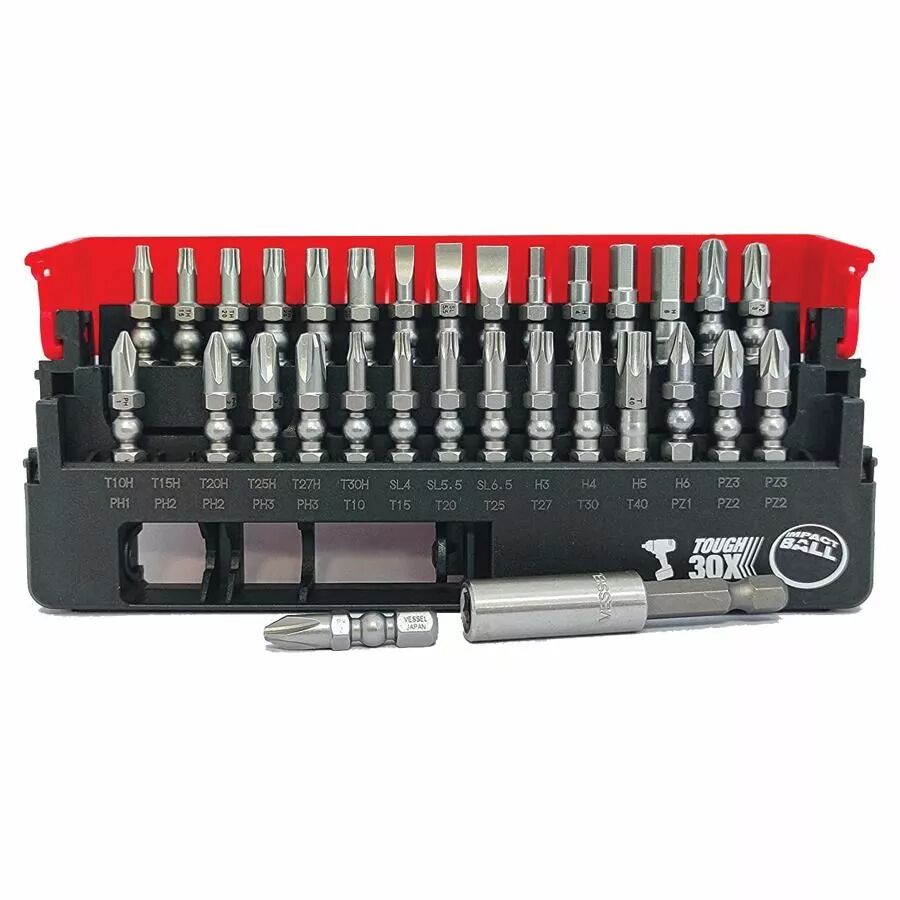 Marre de casser vos embouts ? Optez pour le coffret VESSEL IMPACT BALL. 31 embouts professionnels ultra solides pour toutes vos vis, même avec une visseuse à chocs.