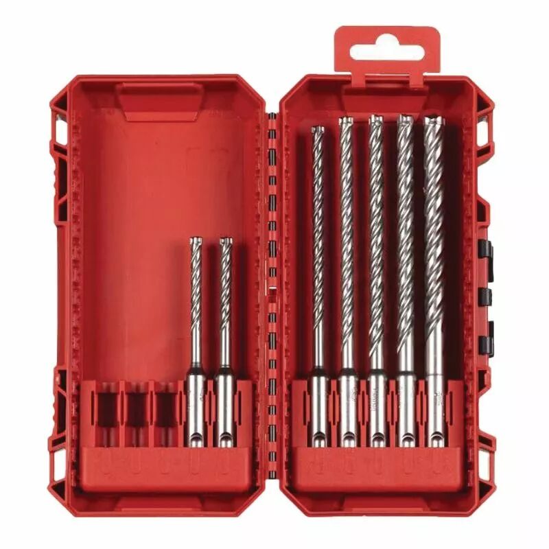 Le coffret contient 7 forets SDS-Plus MX4 (ø 5/5,5 x 115 mm - ø 5,5/6/7/8/10 x 165 mm)