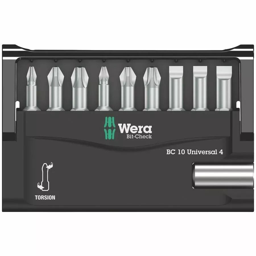 Découvrez le kit d'embouts Wera universel. 9 embouts haute qualité et un porte-embout magnétique dans un boîtier compact. Parfait pour tous vos travaux.