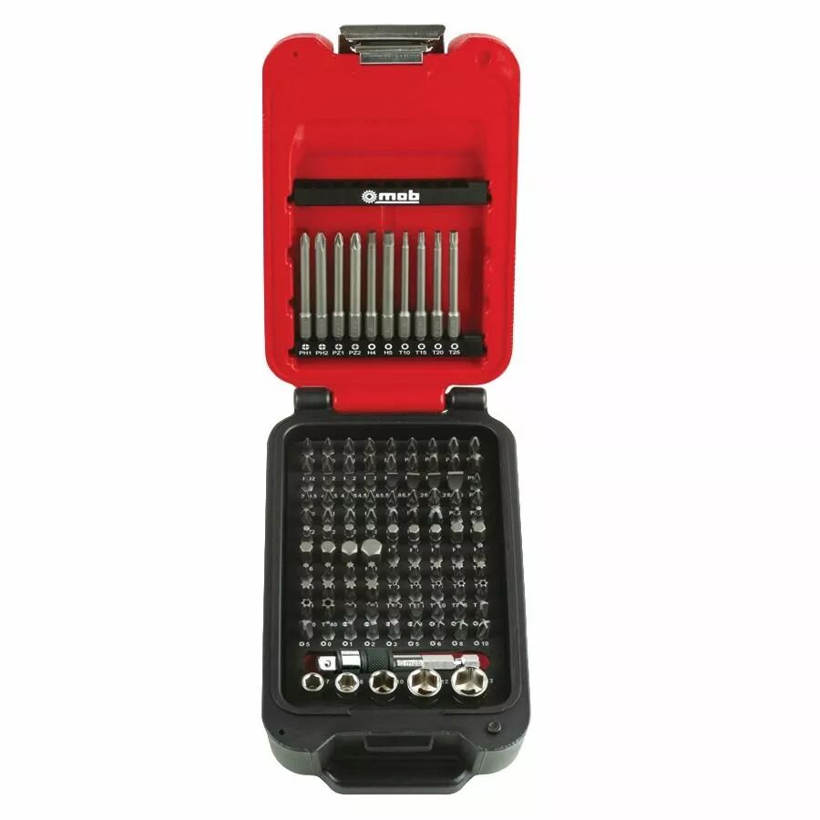 Découvrez le coffret de vissage Mob ultra-complet de 115 pièces. Idéal pour tous vos travaux, il inclut un adaptateur innovant pour embouts et douilles.