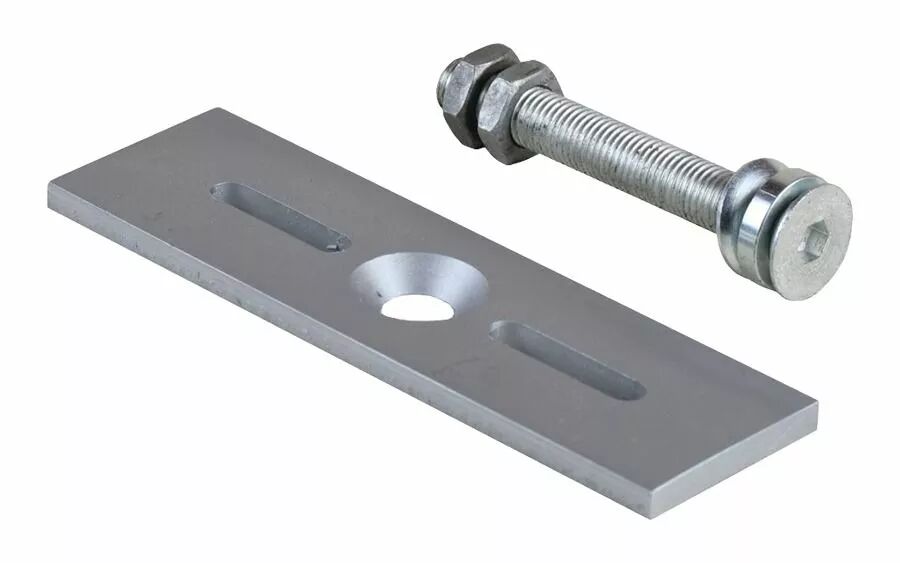 1 plaque acier fraisée de 200 x 60 x 8 mm 1 vis fraisée de M16 x 120 x allen 10 mm 1 rondelle convexe-concave 2 écrous M16