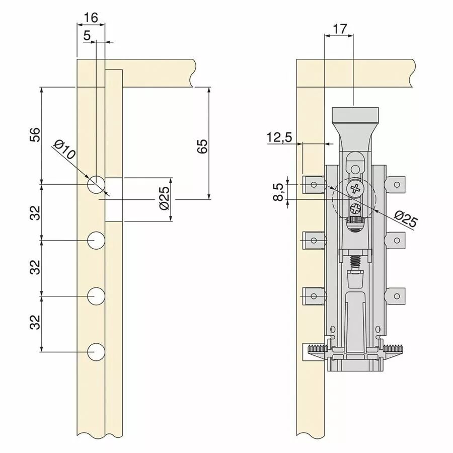 Ferrure fixation meuble haut invisible réversible