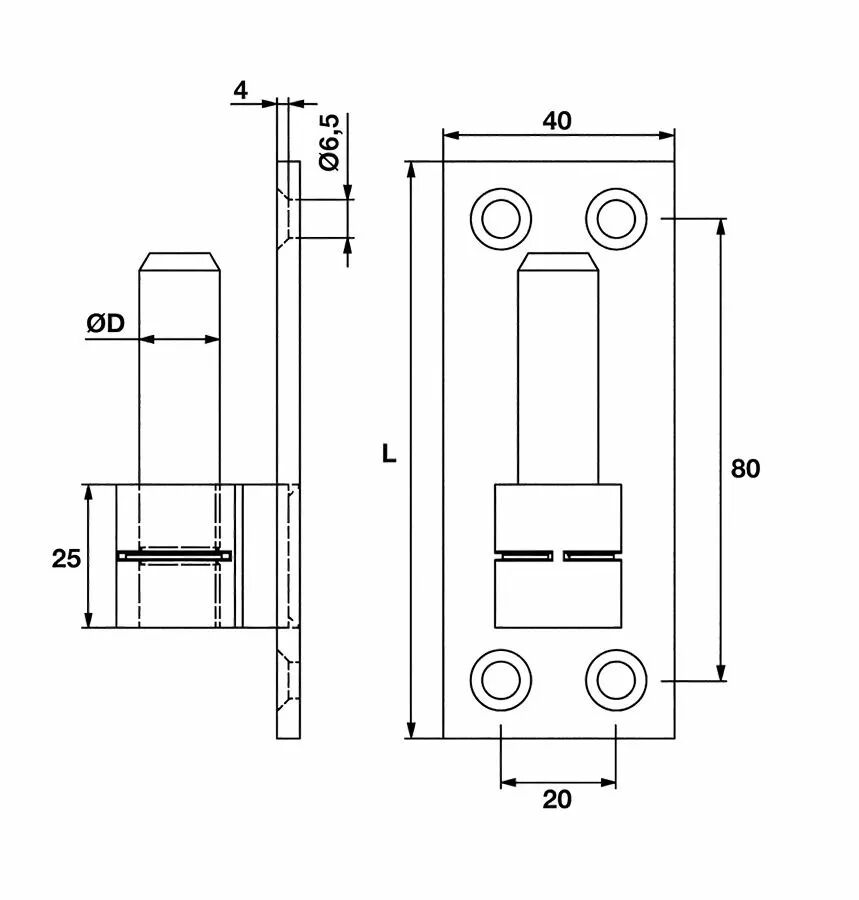 GOND S/PLAQUE INOX 316 D14 40X4X100 AXE LAITON