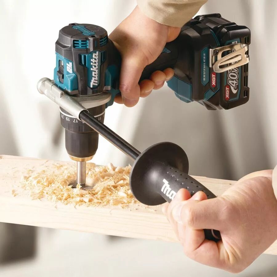 Outillage professionnel Makita 40V, 64 Nm, perçage et vissage en bois, métal et maçonnerie. Technologie XPT étanche, éclairage LED et frein électrique inclus.