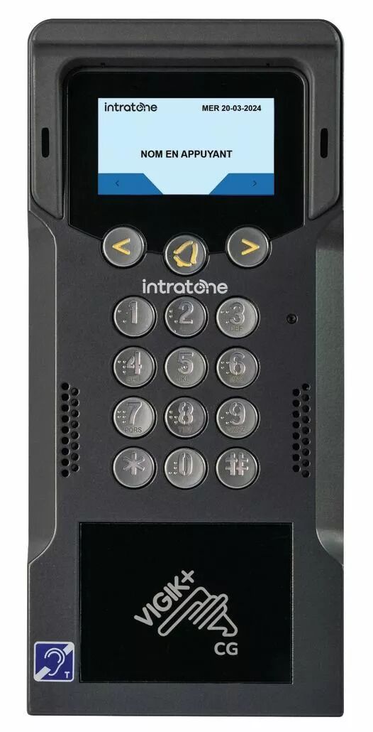Le pack contient 1 platine de rue 120 x 266 x 46 mm avec écran couleur 65 x 36 mm - clavier brail et lecteur VIGIK+ mains-libres