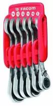 Innovation Facom : ultra compacte, idéale accès difficiles. - Jeu de clés mixtes à cliquet courte sur étui. - clés 40% plus compactes !
