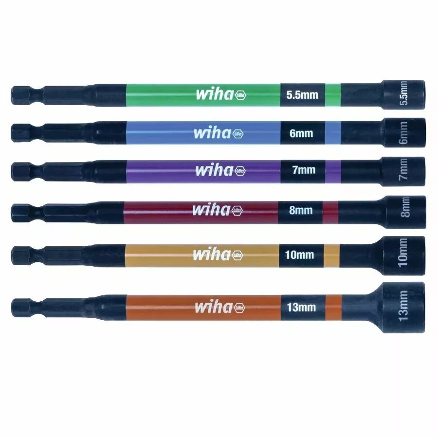 Réussissez vos montages avec les douilles magnétiques Wiha. Longueur 150mm pour vis difficiles d'accès et repérage facile grâce aux couleurs.