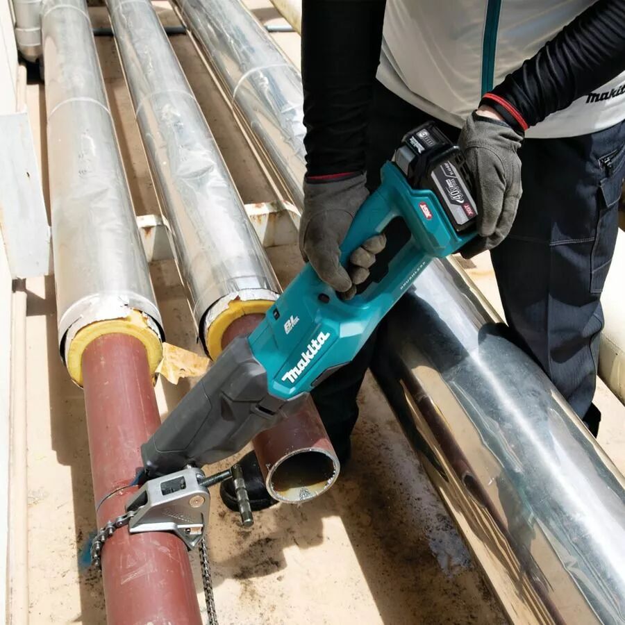 Découvrez la puissance de la scie récipro Makita 40V JR003GZ. Idéale pour couper des tubes acier avec précision grâce à son étau à chaîne robuste.