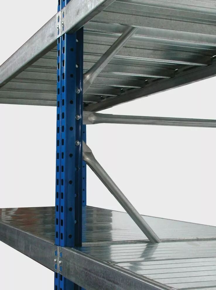 Haut 1950 x larg 1800 x prof 600 mm - Résistance 700 kg par niveau1 niveau - 2 lisses de 1800 mm9 tablettes galva de 600 x 200 m