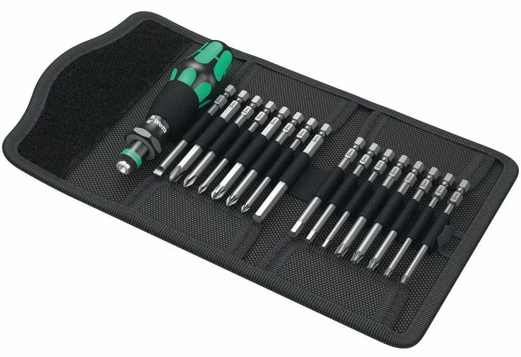 Poche pliante avec 16 embouts de 89 mm de longueur.1 porte-embouts 816 R Kraftform avec mandrin à serrage rapide Rapidaptor.