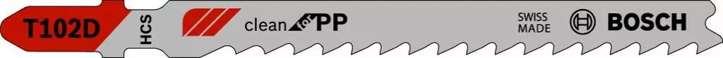 Long. totale mm : 100 - Cond. : 5 - Pas en mm : 4,0 - Clean for PP (Polypropylène) - Type T102 D. Rectifiée, dos dépouillé.Coupes nettes dans les panneaux, profilés et barres en PP et PE, 5 - 30 mm.
