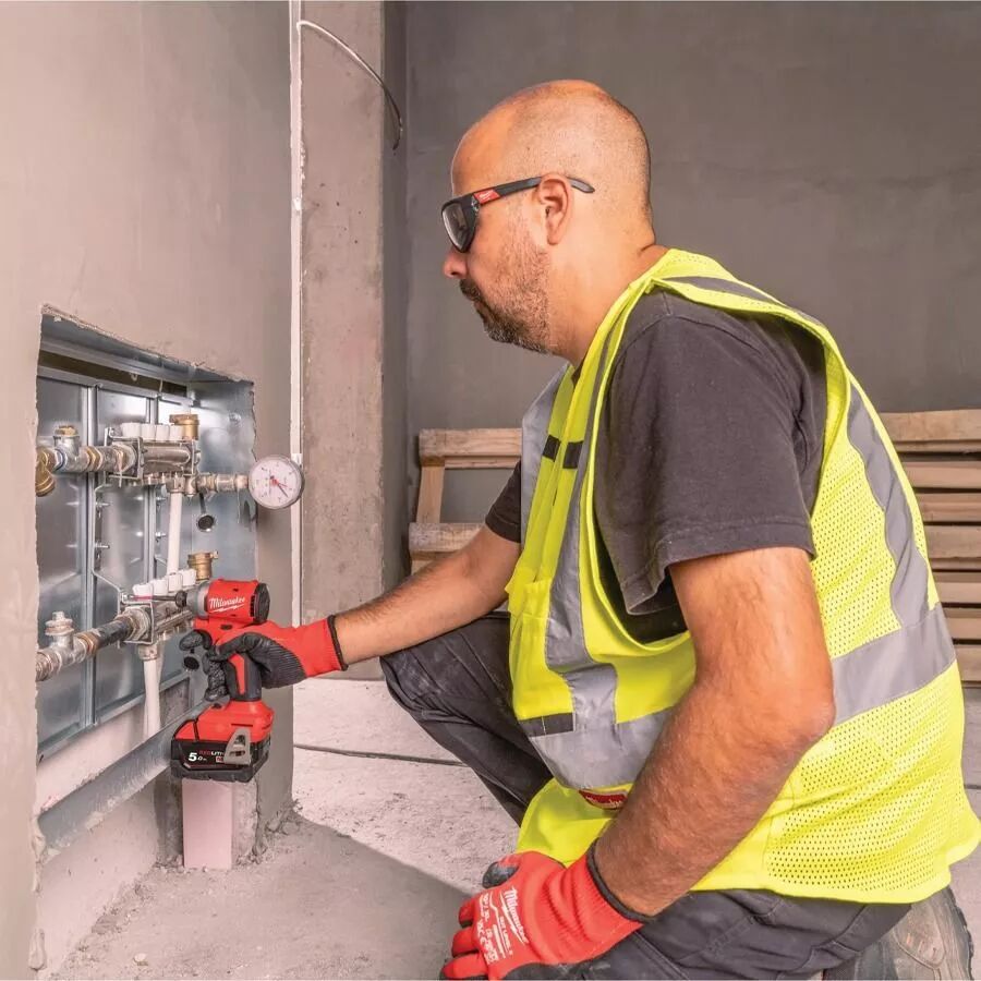 Visseuse à chocs sans fil Milwaukee M18 puissante et légère, idéale pour les vissages en zones étroites. Kit complet avec batteries.