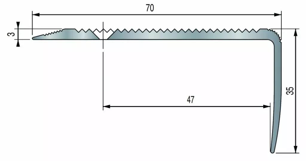 70 x 35 x 3 mm - long. 3 m - à visser Percé et fraisé de 16 trous ø 3,6 mm