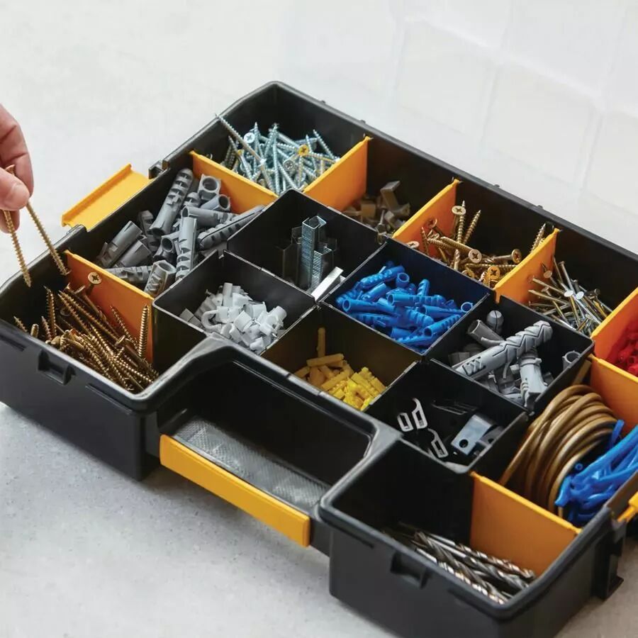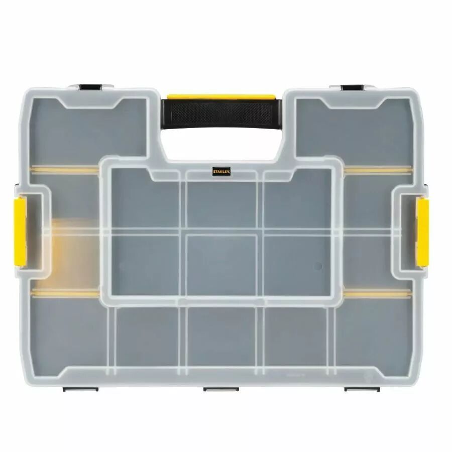 Rangez facilement votre quincaillerie avec l'organiseur Stanley SortMaster. Compartiments ajustables et couvercle transparent. Qualité professionnelle accessible.
