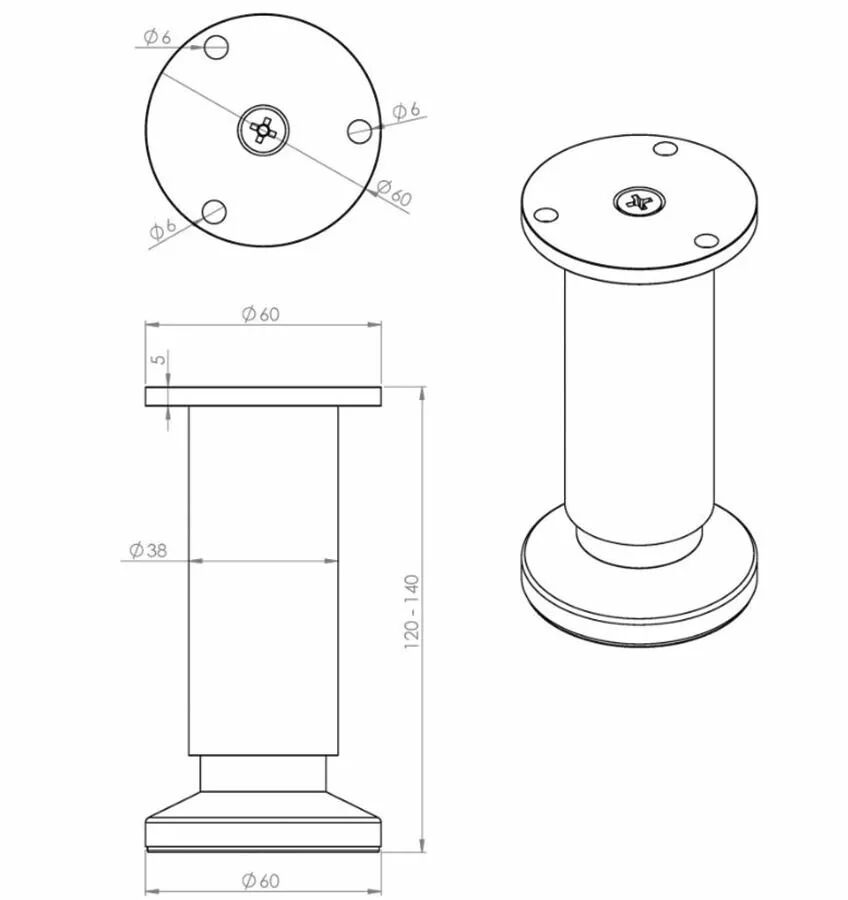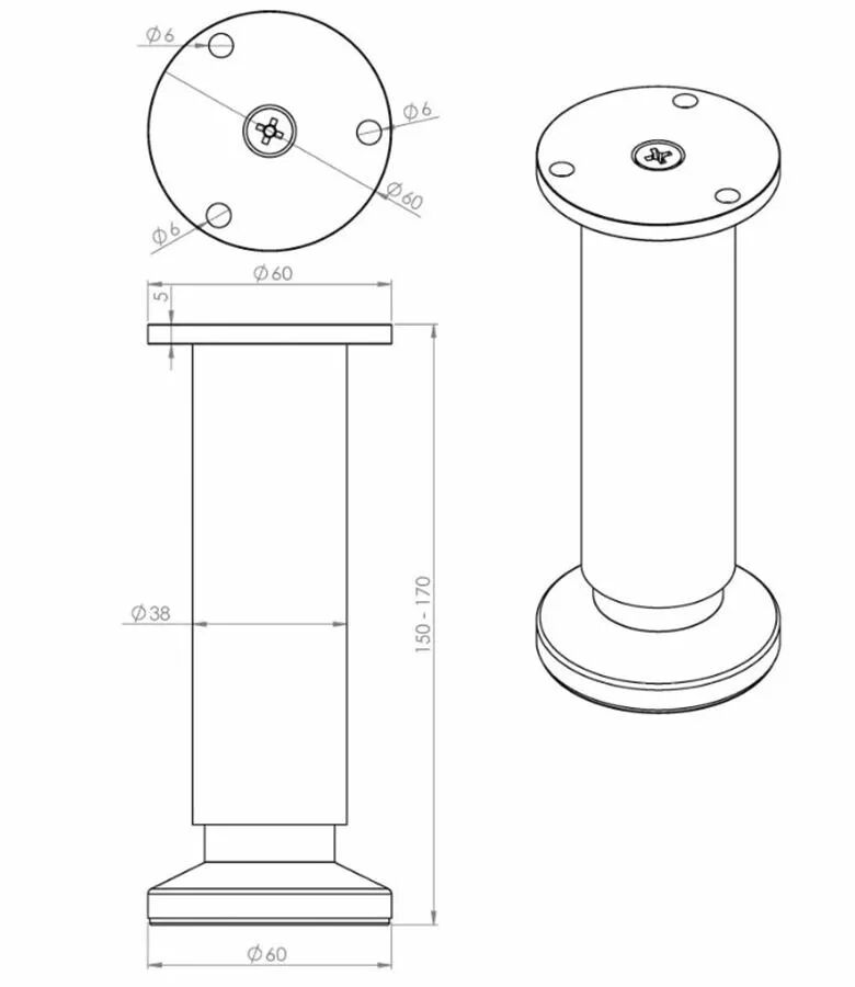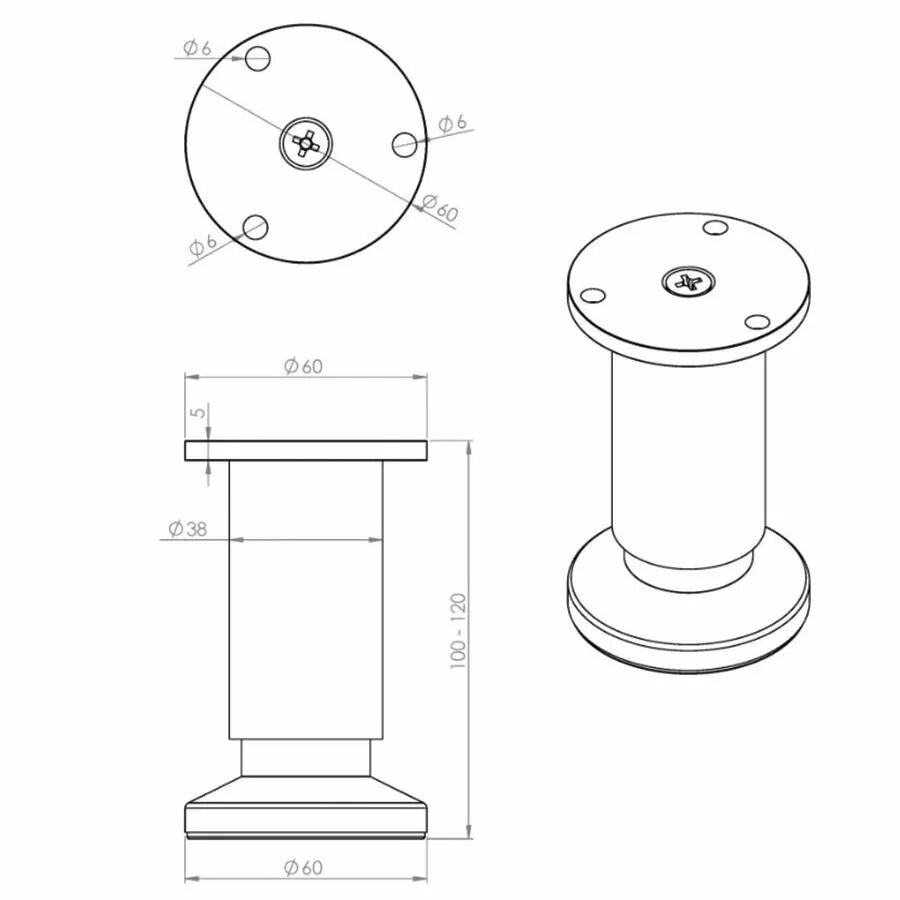 Pied de caisson réglable ø38 mm