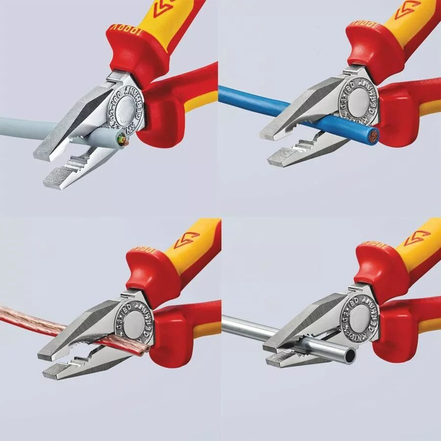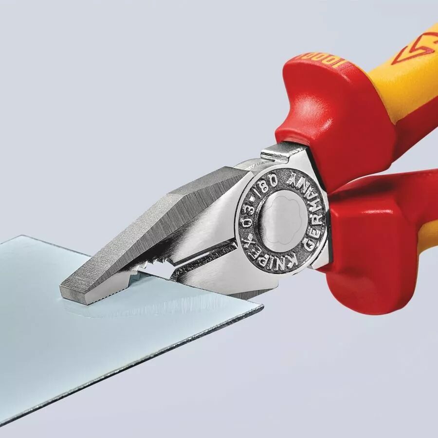 Réalisez vos travaux électriques en toute sécurité avec la pince universelle KNIPEX isolée 1000V. Coupe nette et prise puissante pour câbles et fils durs.