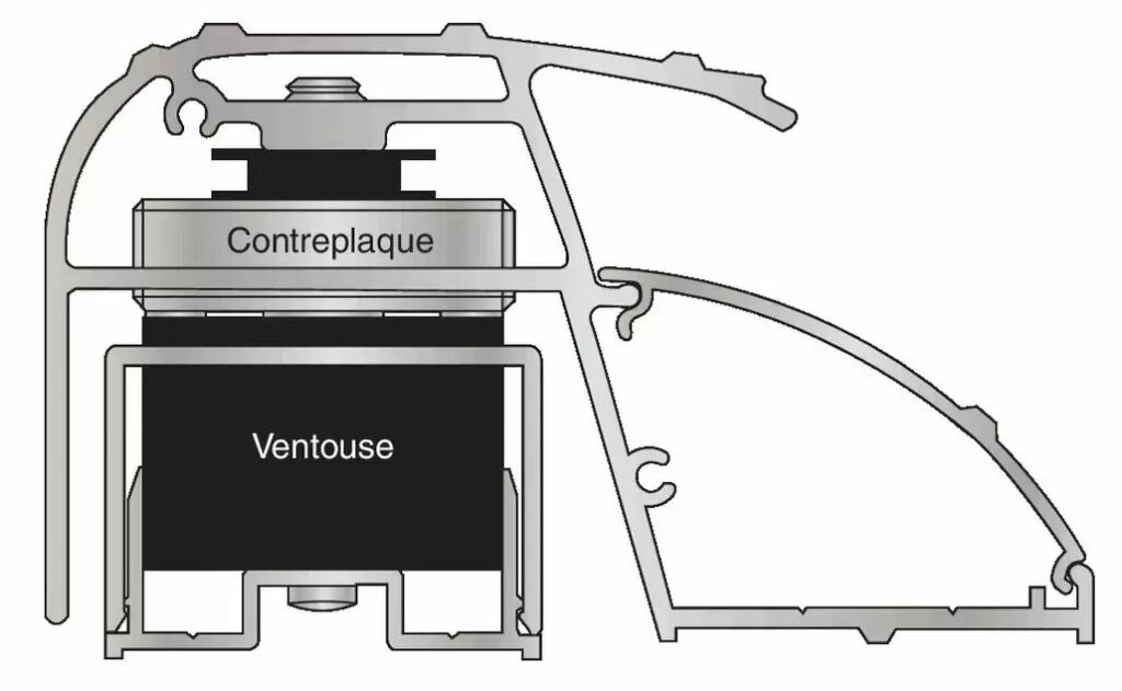 Design ergonomique et novateur grâce à sa poignée intégrée NF S61 - 937 sous 24 V. Profils pré-percés (réglables), pré-monté. Ventouses avec bornier de raccordement. Passage des câbles facilité grâce au bossage central à l'arrière du poteau technique (support des ventouses).