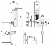 Corps alliage moulé Pêne acier nickelé Bras acier nickel satin Réhausse pour fenêtre à recouvrement Verrouillage possible de l'entrebaillement par 1/2 cylindre européen - livré sans 1/2 cylindre