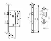 Coffre acier embouti Têtière acier Pêne 1/2 tour réversible sans démontage du coffre Pêne acier Gâche plate acier Mécanisme à 2 tours Carré de 7 mm Entraxe 7 mm