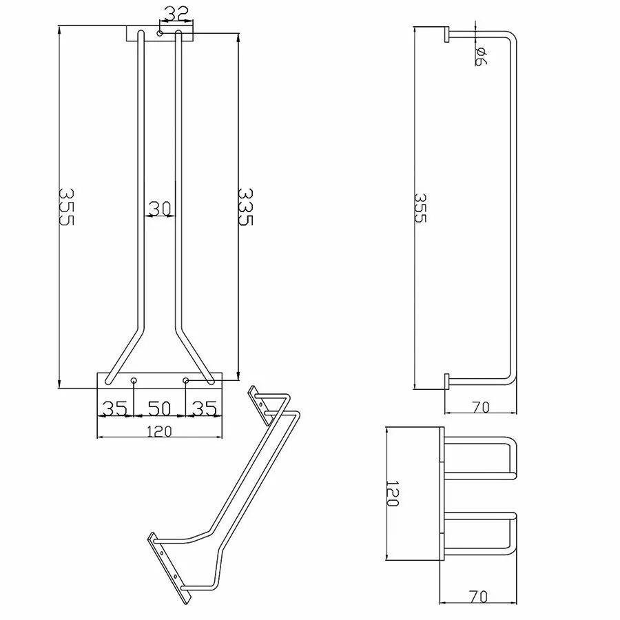 RATELIER A VERRES 1 RANGEE NOIR DIM 120X355X70