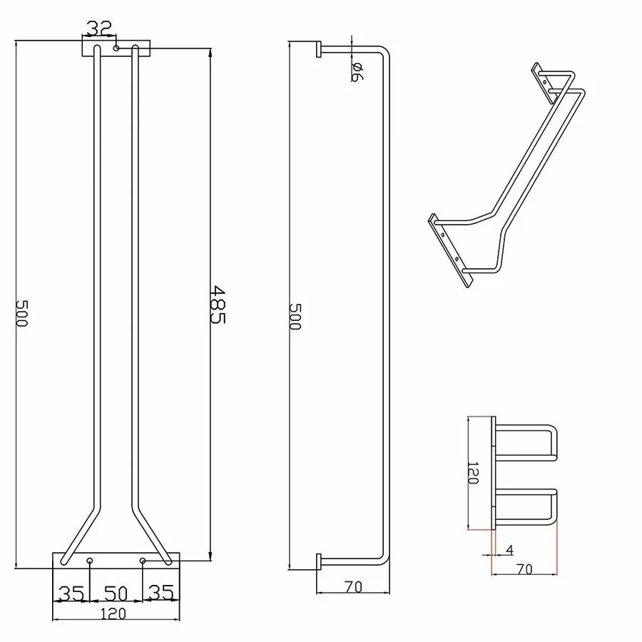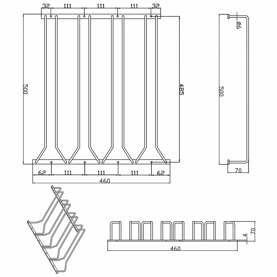 RATELIER A VERRES 1 RANGEE NOIR DIM 120X500X70