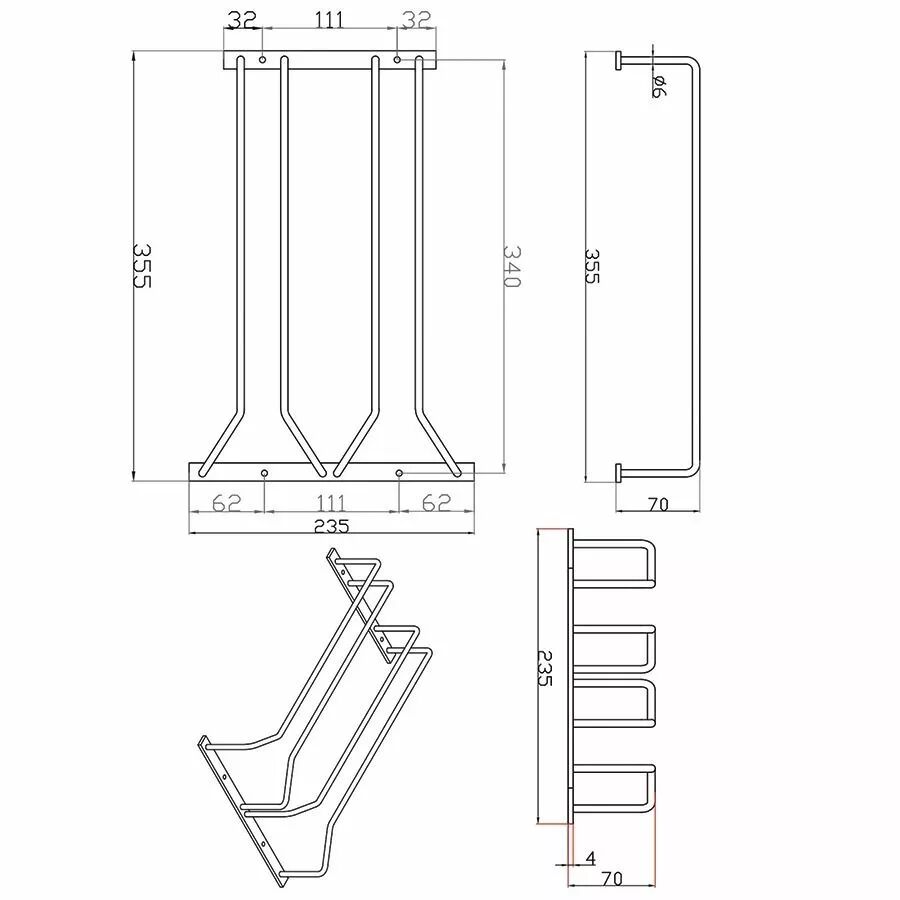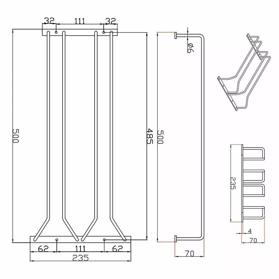 RATELIER A VERRES 2 RANGEES NOIR DIM 235X500X70