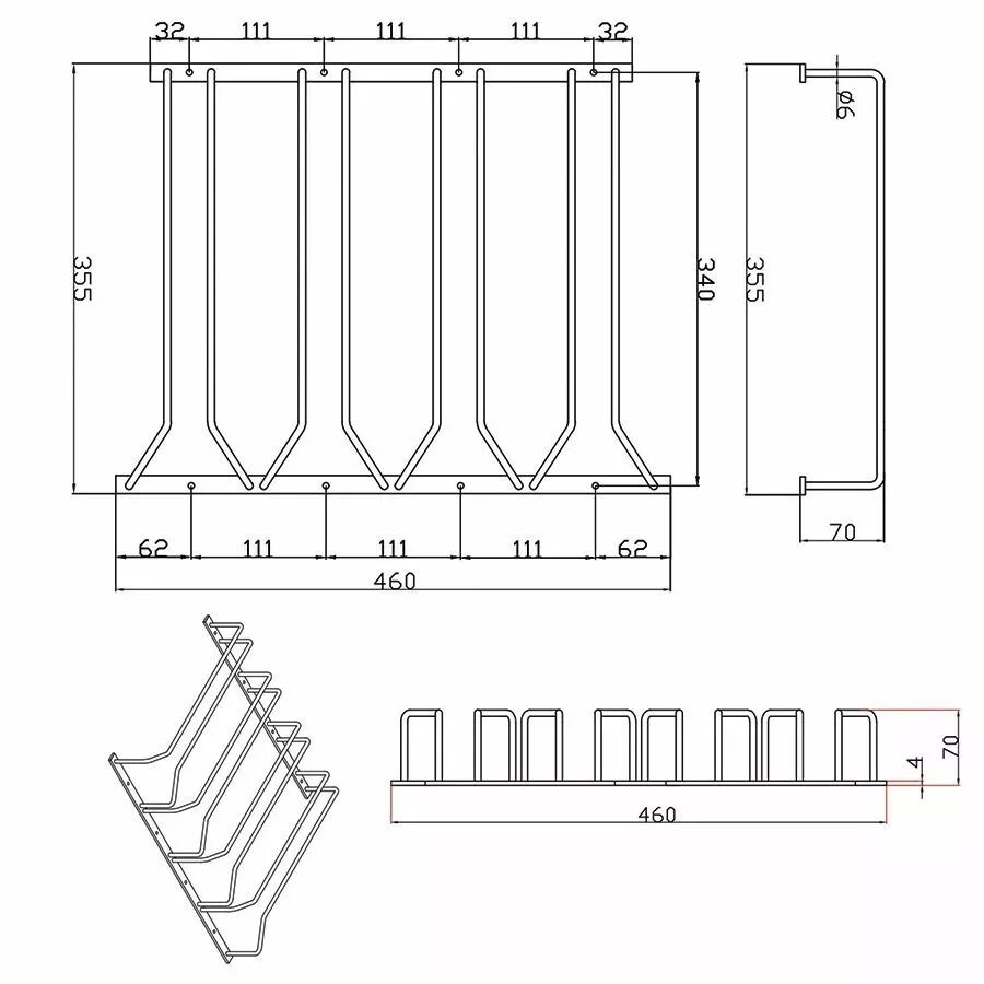 RATELIER A VERRES 4 RANGEESNOIR DIM 460X355X70