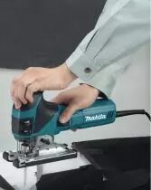 Fonction éclairage incorporée pour un travail plus aisé dans les endroits sombres. Axe de coupe à profil carré pour plus de précision dans les courbes.Vibrations réduites (système AVT).Système de changement de lame sans outil rapide et résistant.5 plages de réglages de la vitesse pour un travail optimal sur différents matériaux. Base en aluminium rigide inclinable à gauche et à droite à 45 ° pour une plus grande précision de coupe.Sortie de l'air de refroidissement dirigée vers l'avant pour un travail plus confortable et un nettoyage permanent du point de coupe.Garantie 1 an + 2 ans sous condition d'enregistrement obligatoire de la machine, sous 30 jours après la date d'achat, sur www.makita.fr/garanties.