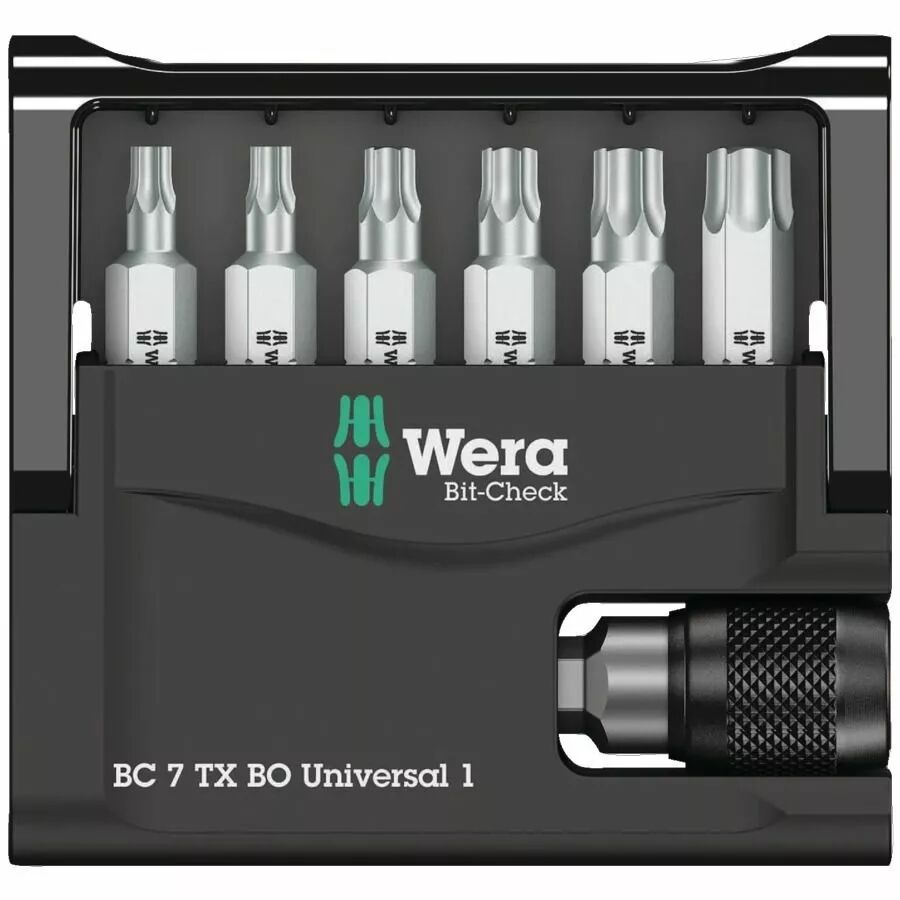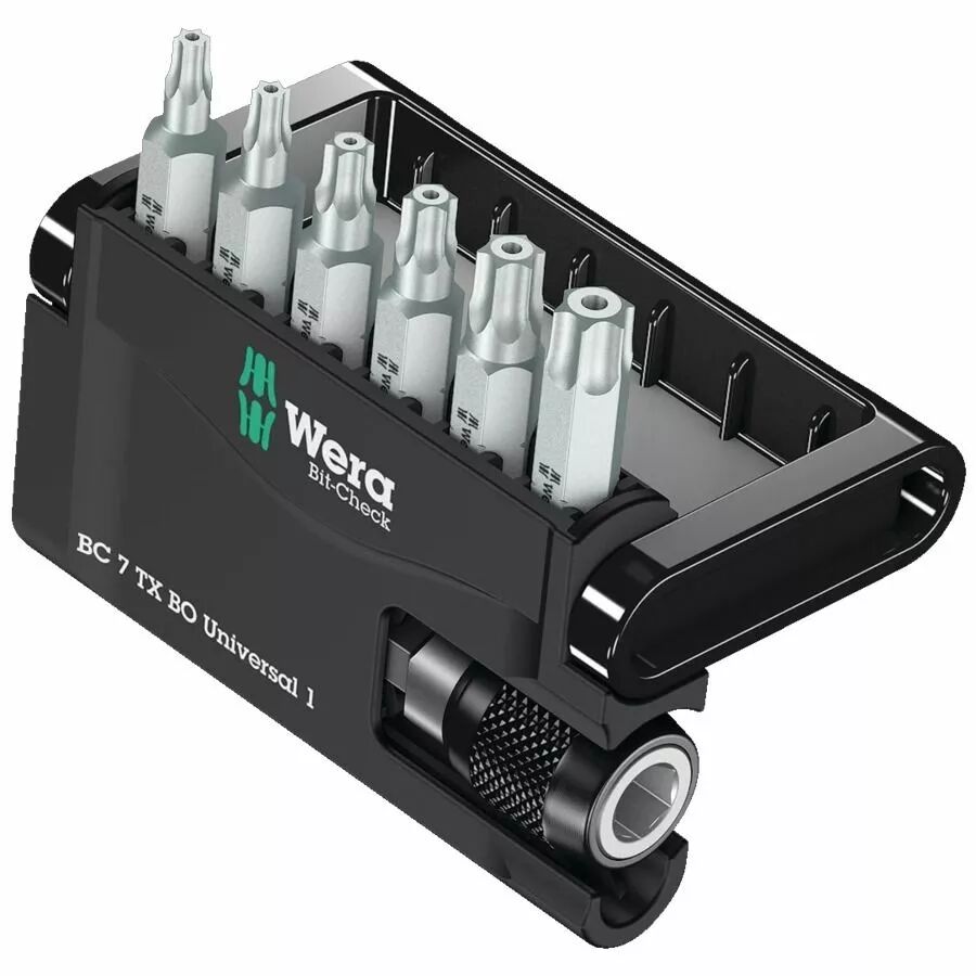 Démontez facilement les vis de sécurité avec le kit Wera TORX BO. 6 embouts haute qualité et un porte-embout magnétique dans une boîte de poche.