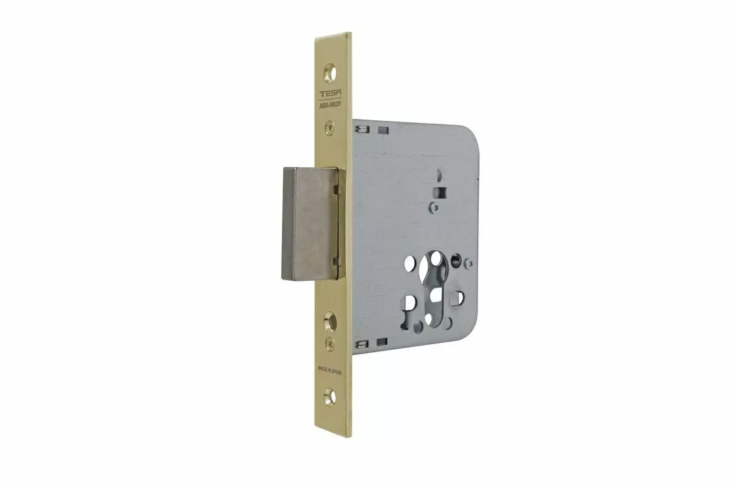 Pêne dormant seul - Têtière acier laitonné bouts carrés - avec gâche