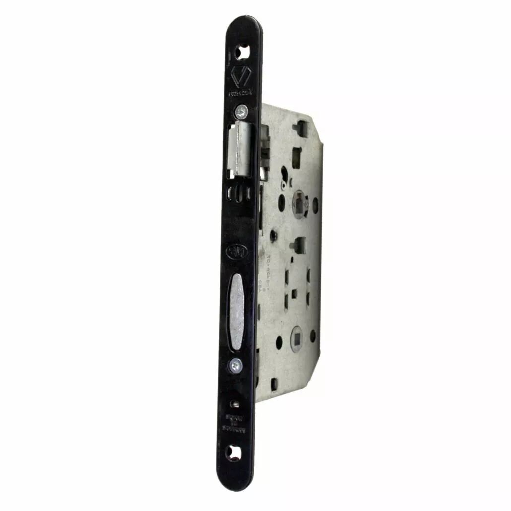Pêne dormant 1/2 tour - 1 clé - 6 variures - Têtière acier vernie noir bouts ronds réversible - sans gâcheSuremballage de 25