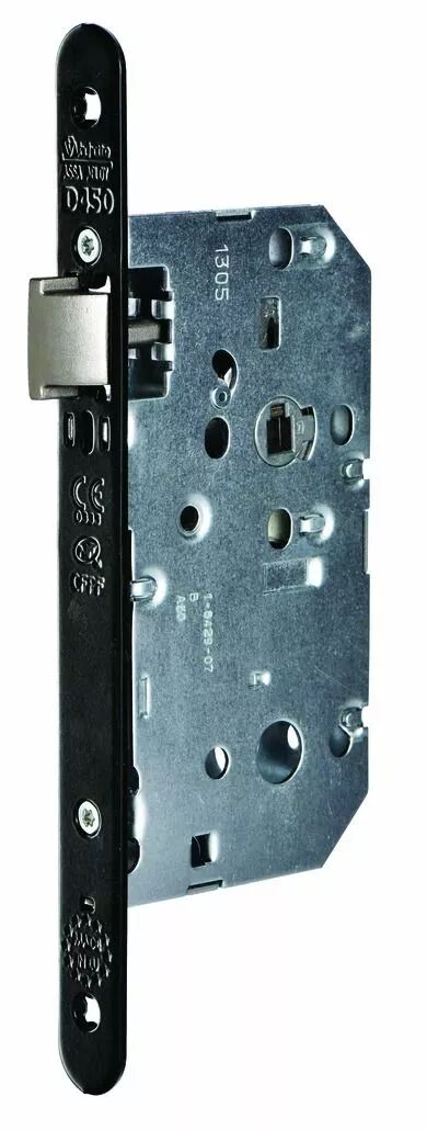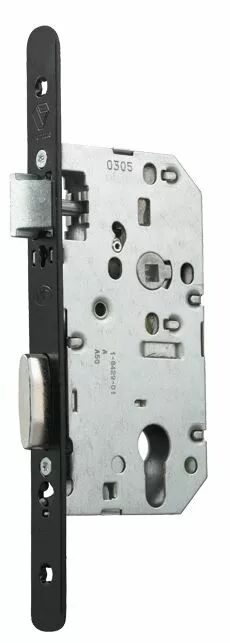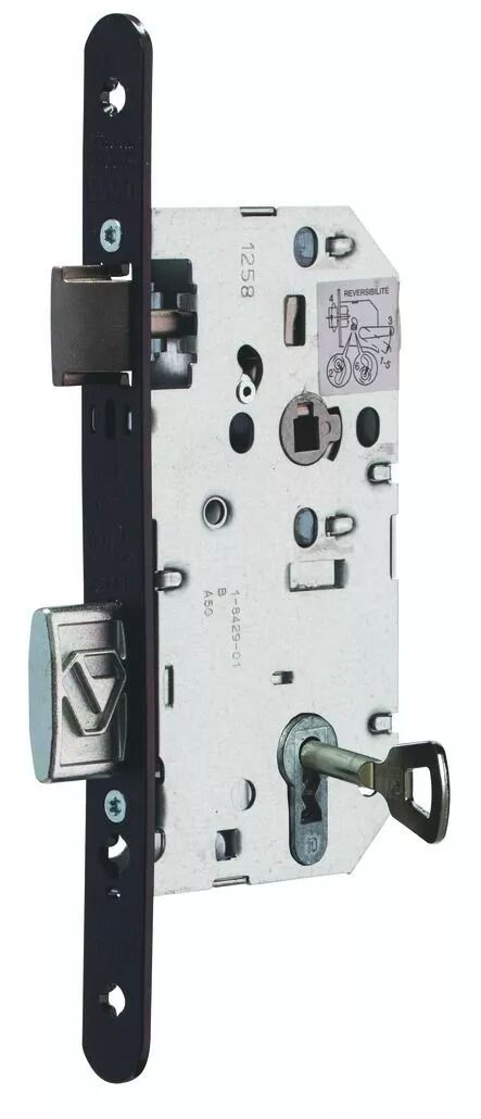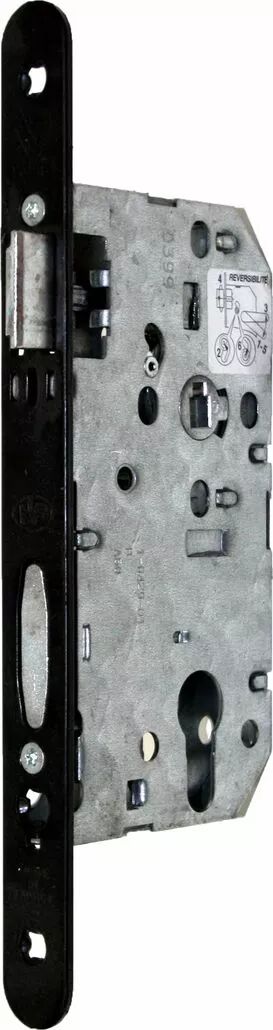 Pêne dormant 1/2 tour - 1 clé - 6 variures - têtière acier vernie noir bouts ronds réversible - sans gâche