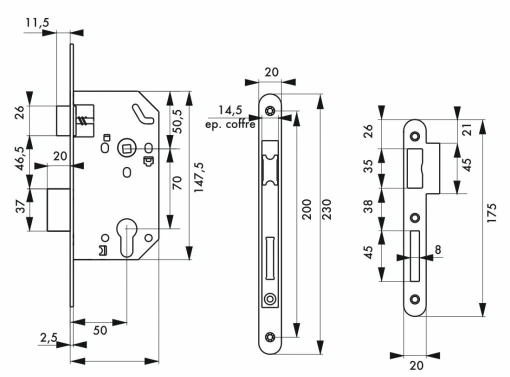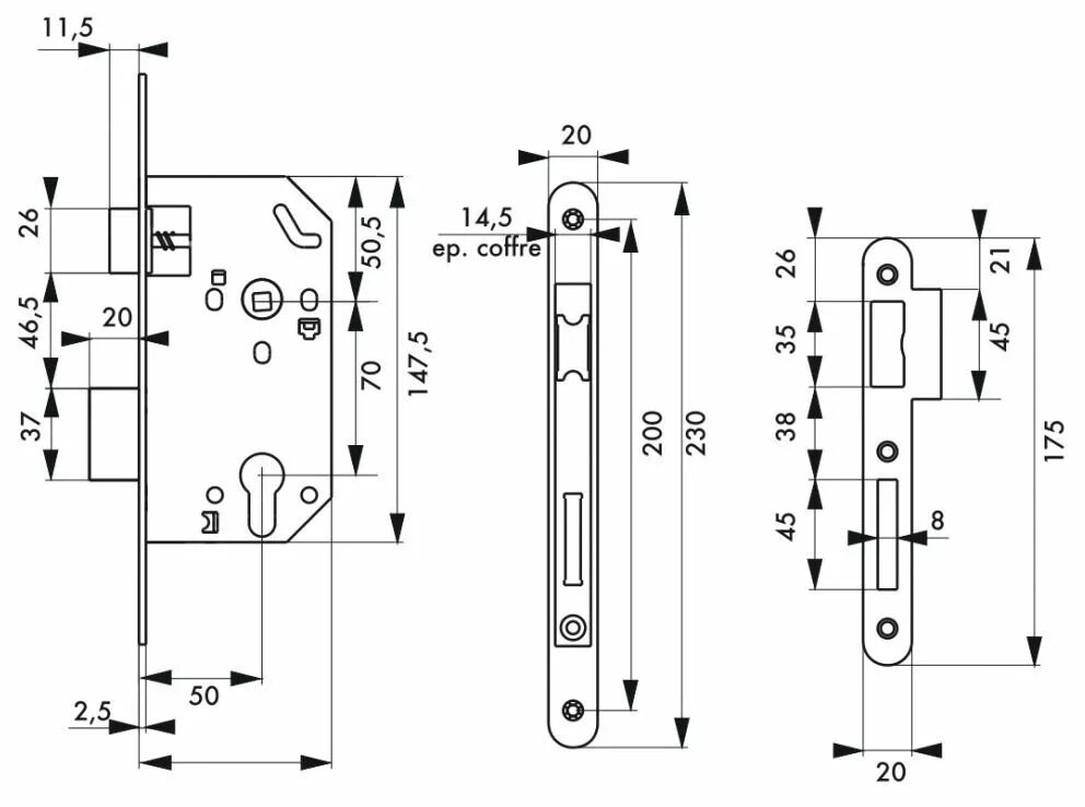 Serrure à larder pour porte d'intérieur