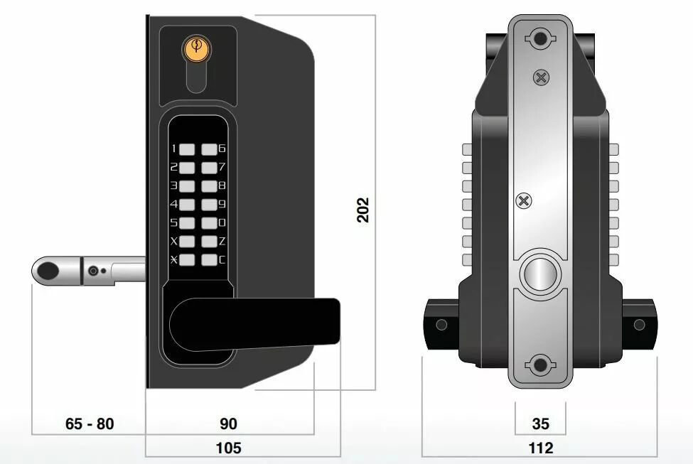 Serrure complète noire réversible pour portillon avec 2 boîtiers à code face à face - 1 cylindre européen - 3 clés