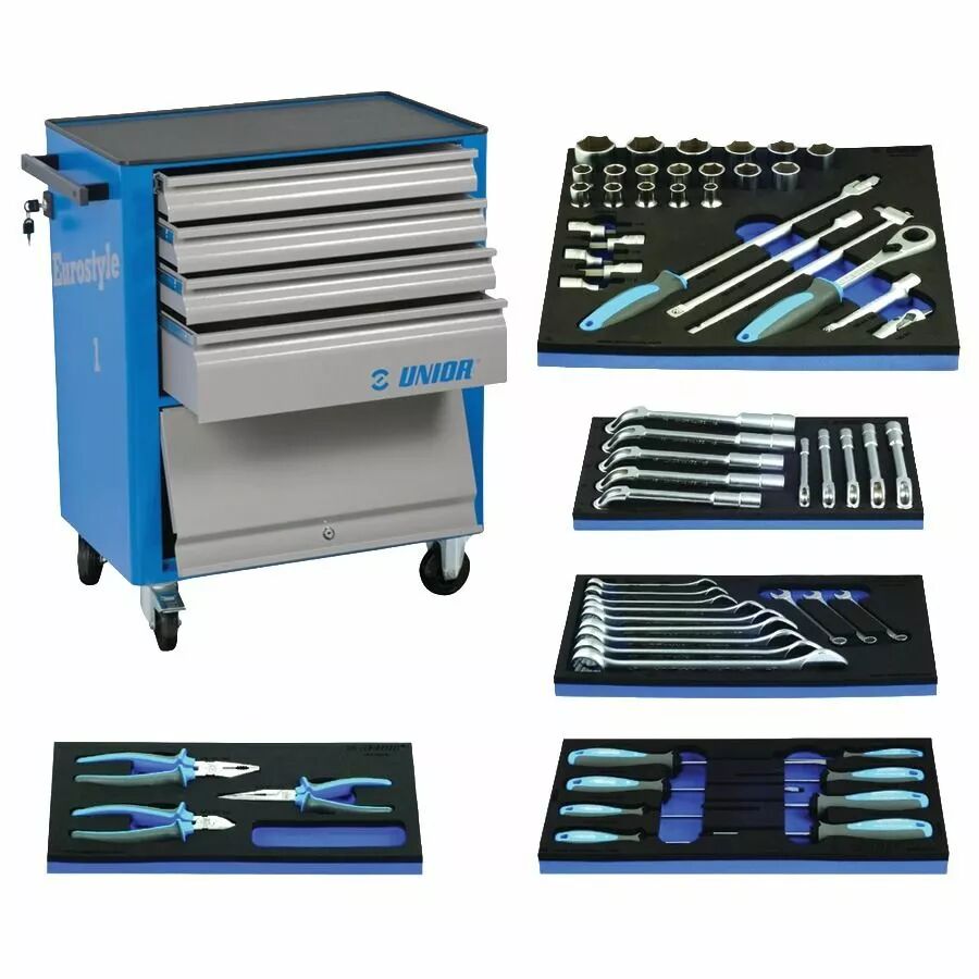 Equipez votre garage avec la servante Eurostyle Unior et ses 62 outils inclus. Qualite professionnelle, tiroirs sur roulements et rangement optimise.