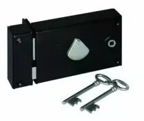 Coffre en tôle EZ peint couleur noir Epaisseur 2/1 mm Pênes et fouillot en zamack Pêne 1/2 tour réversible L x H x E : 14 x 87 x 28 mm Axe clé : 58 mm Entraxe : 57 mm Largeur de la gâche de 3,5 mm (rep G) Longueur du canon de 4 mm (rep C)
