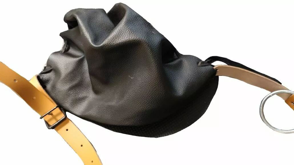 En cuir avec ceinture équipée d'un anneau porte-marteau. 2 poches.