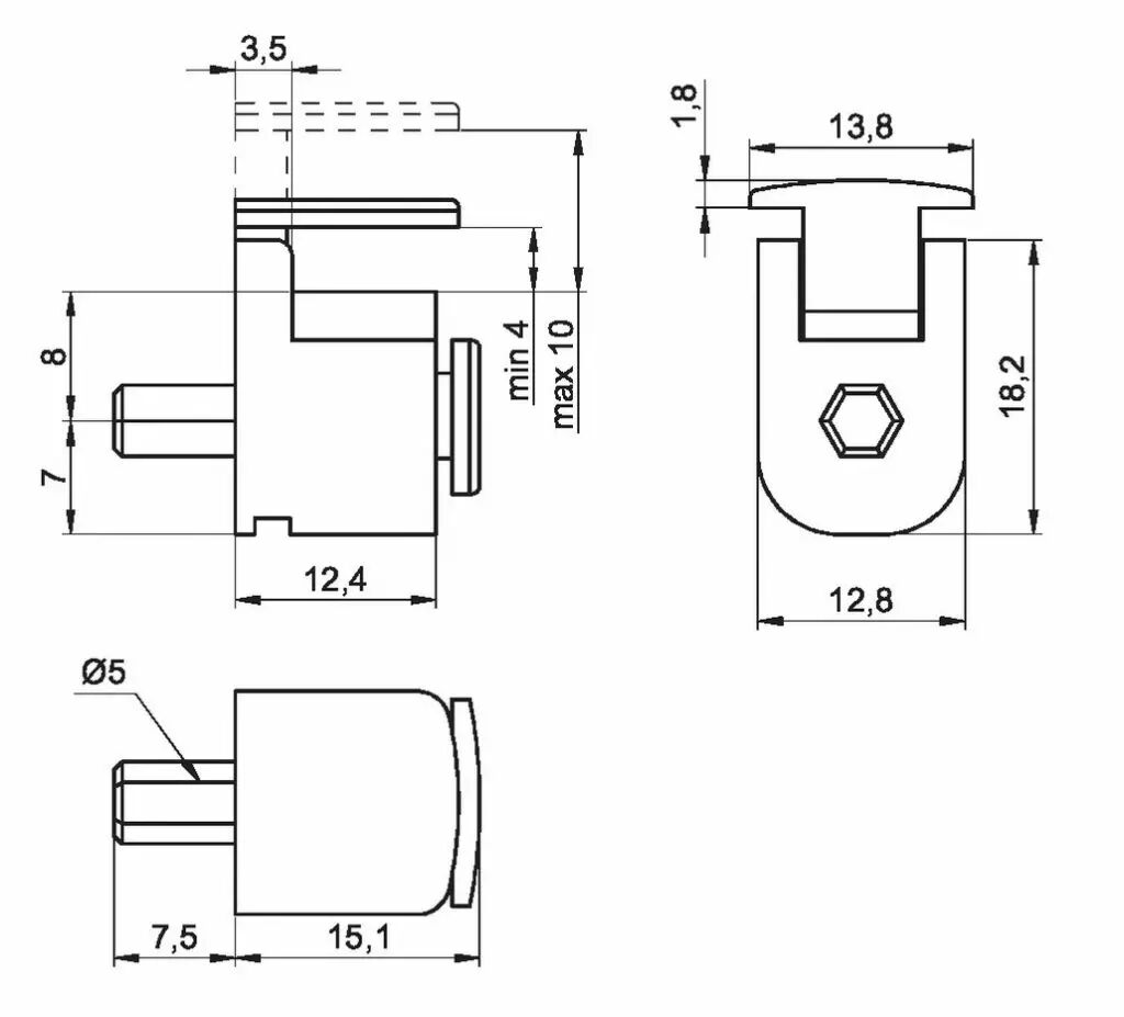 Taquet verre 4 à 10 mm - autobloquant