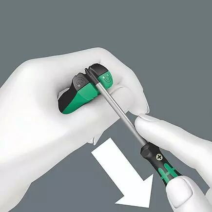 Pour magnétiser, glisser votre outil le long de la face positive de la Star Wera et pour démagnétiser le long d'une des 4 faces.