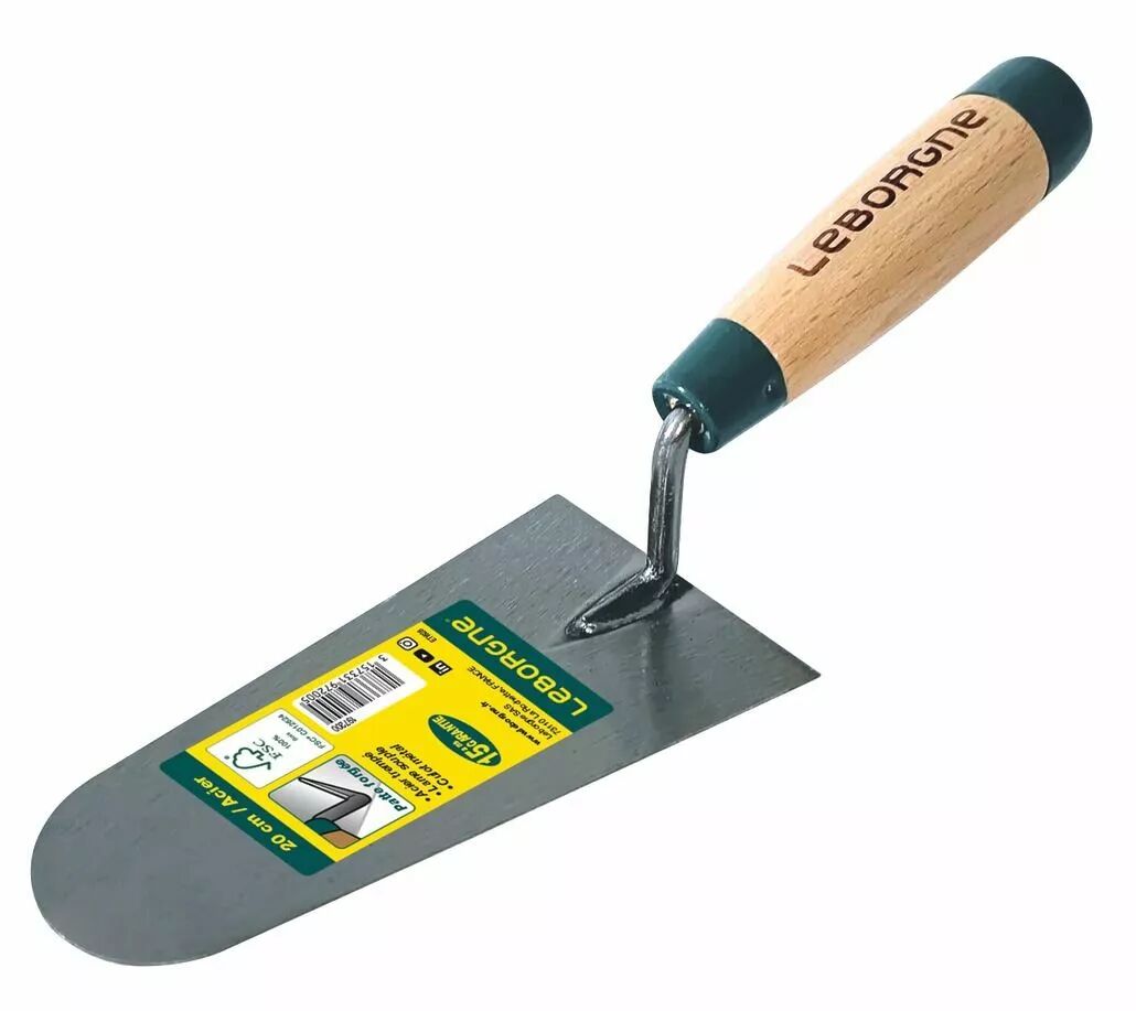 Truelle ronde 18 cm LEBORGNE avec manche bois ergonomique. Idéale pour ciment, plâtre, mortier. Livraison rapide 24/48h partout en France, pour particuliers.