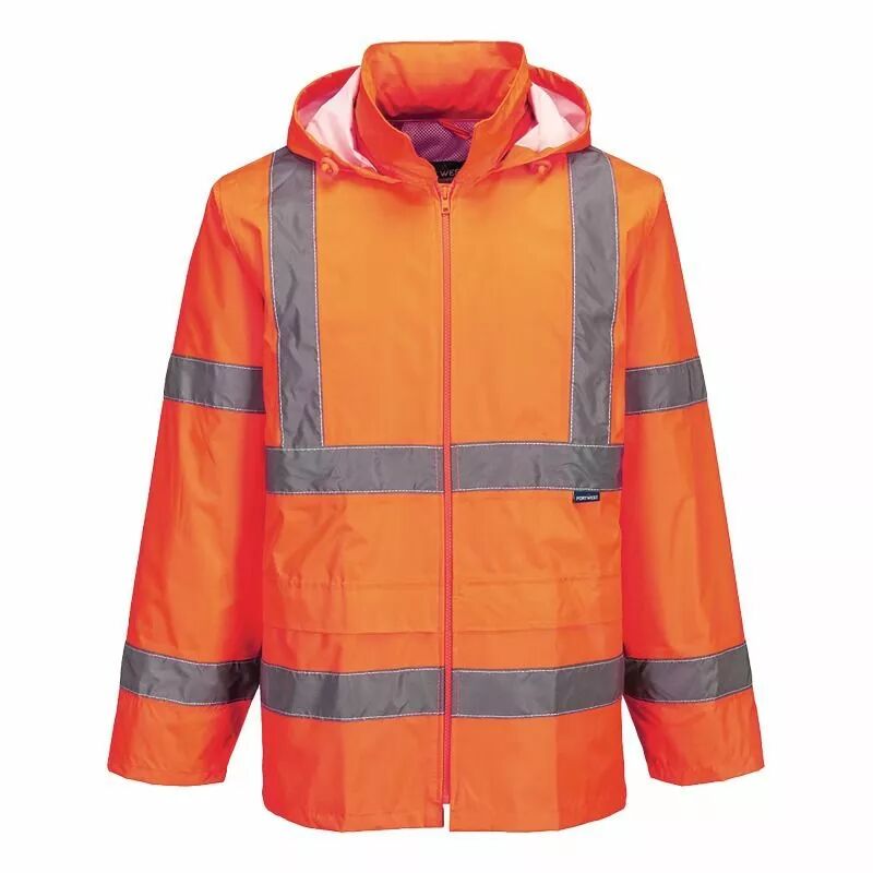 Veste de pluie haute visibilité orange. Protection optimale contre les intempéries et visibilité accrue pour votre sécurité. Idéale pour les travaux extérieurs. Livraison rapide en France.