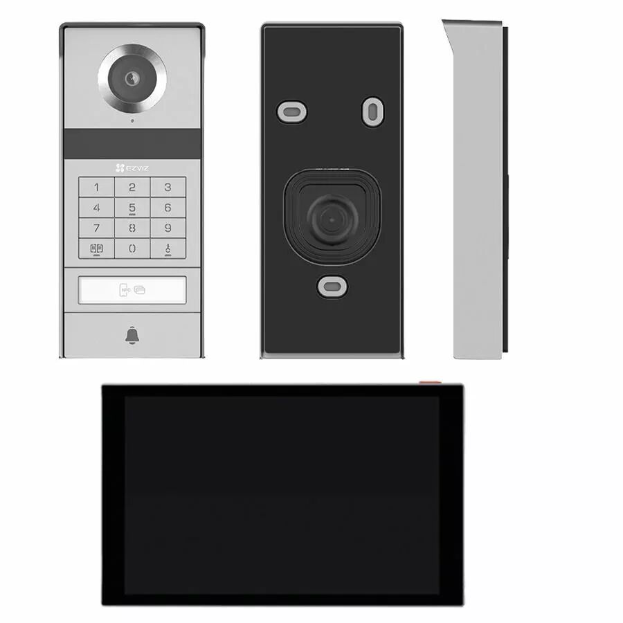Le pack contient 1 écran tactile 8" - 1 platine de rue - 1 support mural - 2 gabarits - 2 fils - 2 connecteurs - 1 câble jack - 5 badges - 2 porte-noms - kit de vis - guide de démarrage rapide - 1 tournevis à fente - 1 tournevis hexagonal